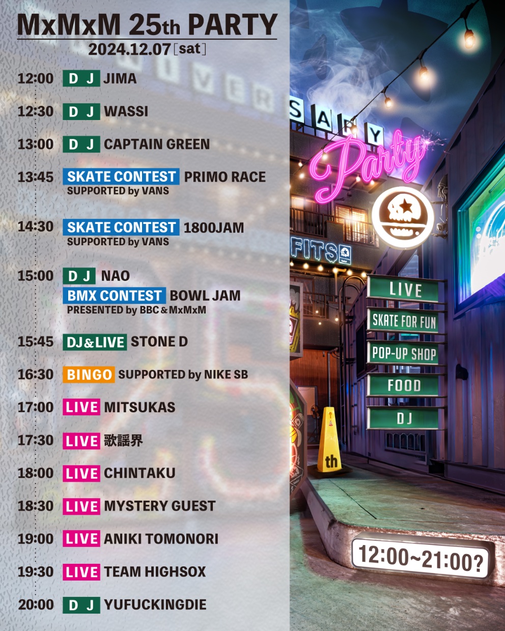 MxMxMの25周年記念イベントが12月7日(土)にMunchies Castleにて開催。