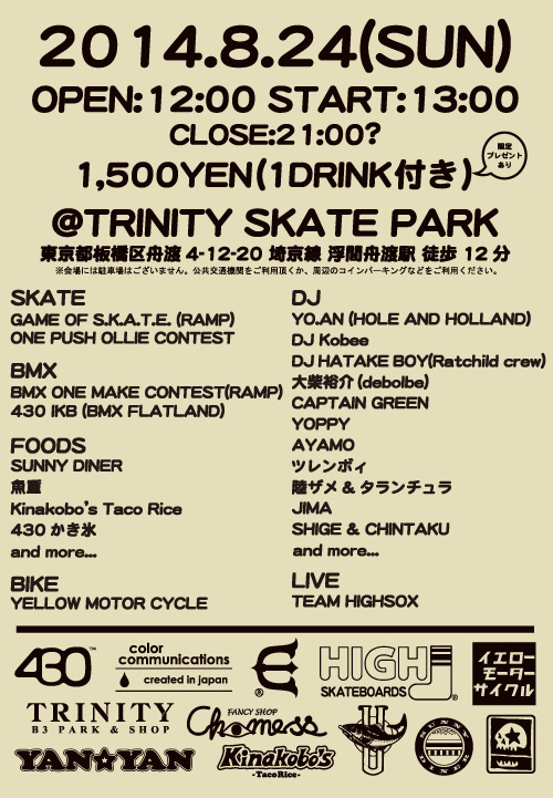 会場:Trinity Skate Park 東京都板橋区舟渡4-12-20