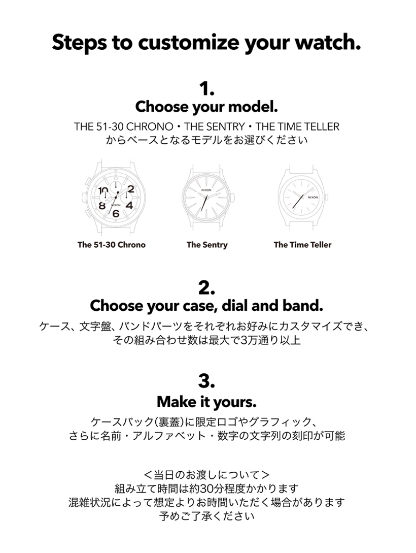 約3万通りのカスタマイズが可能なことで人気を集めるNIXONのPop-Up Custom Barが福岡と辻堂で開催。