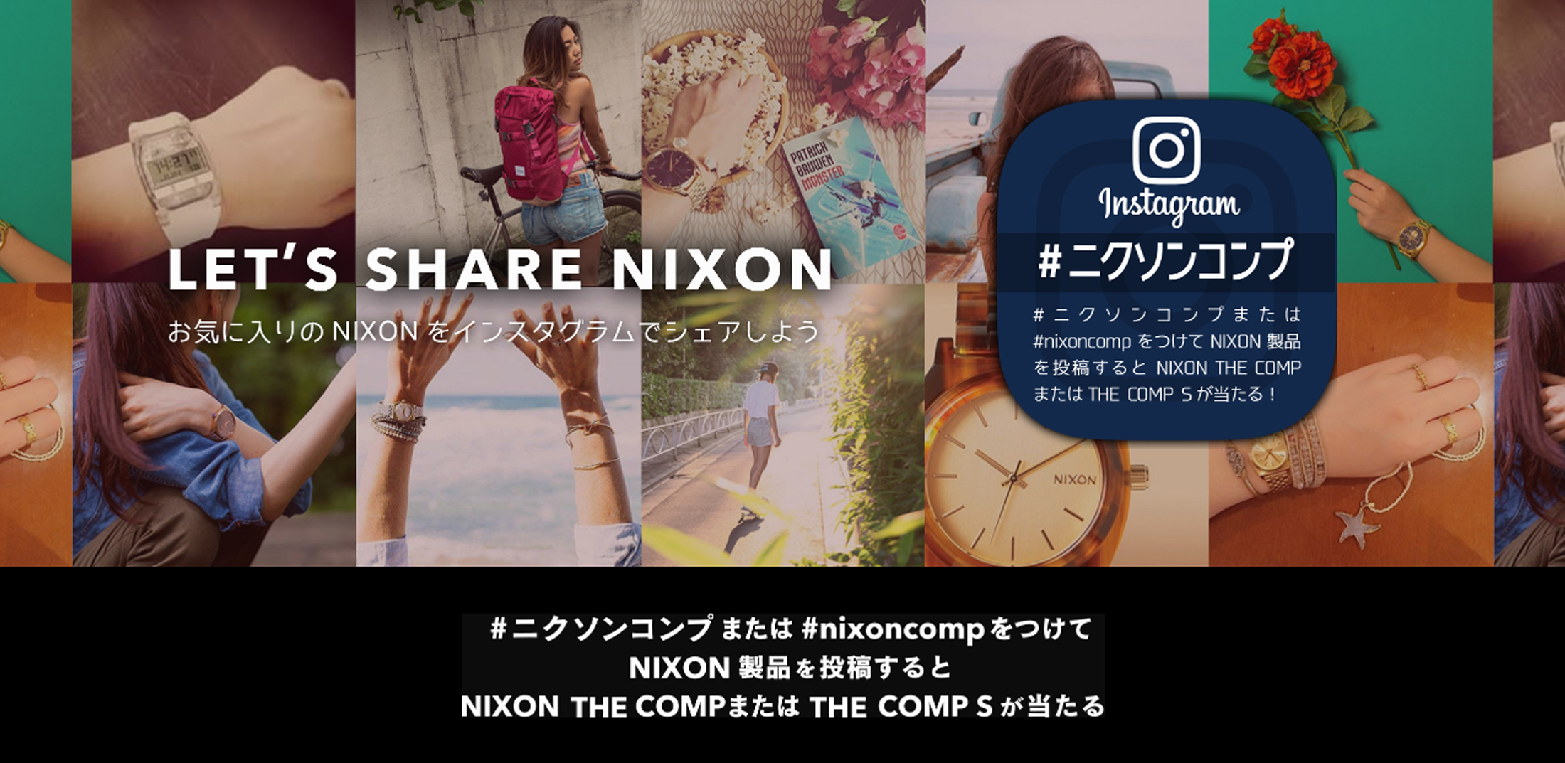 インスタグラムで#ニクソンコンプ(もしくは#nixoncomp)をつけて投稿すると、特設ページに画像が掲載。