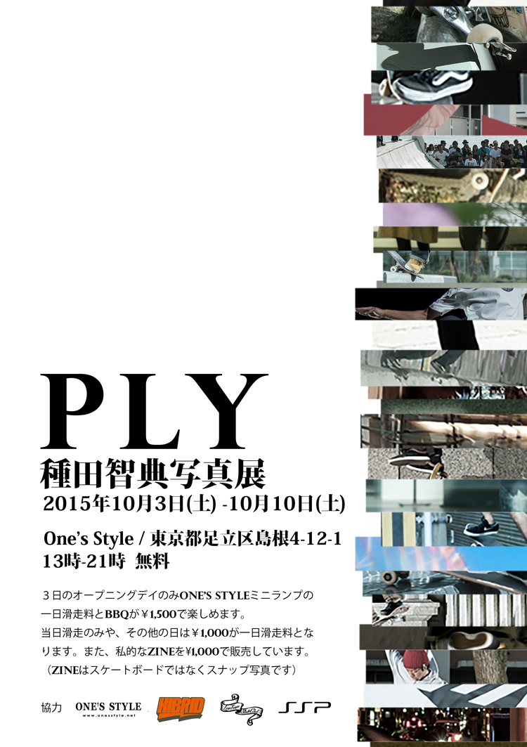 東京の下町を拠点に活動するフォトグラファー、種田智典の写真展“PLY”が足立区西新井のOne’s Styleにて開催される。