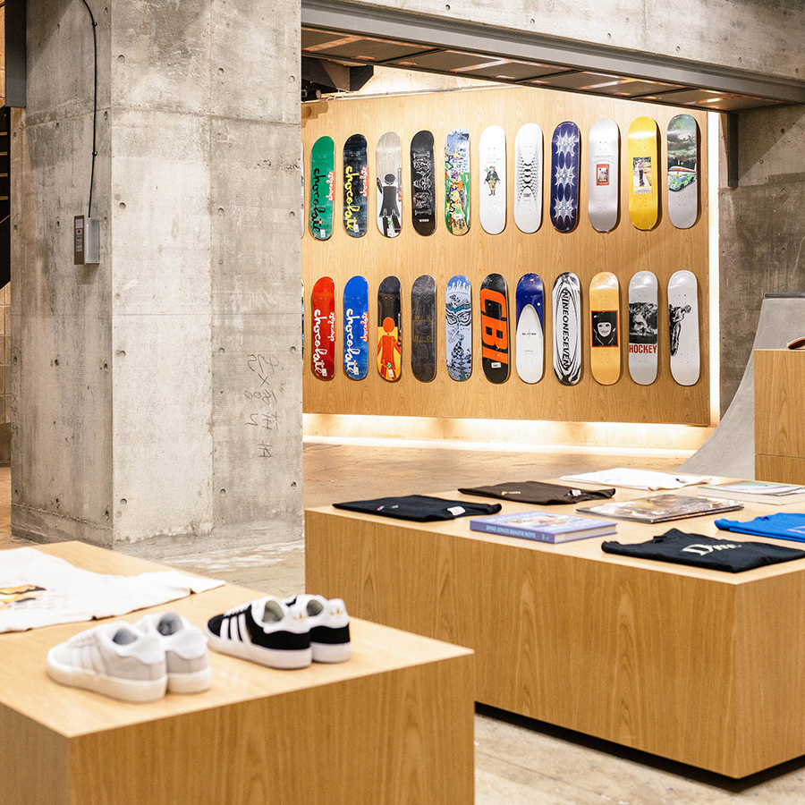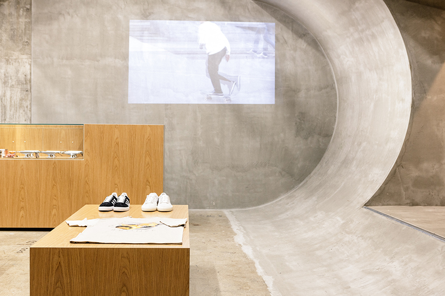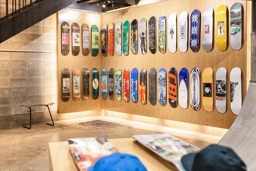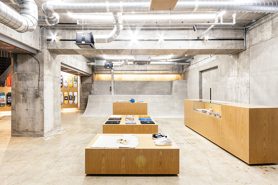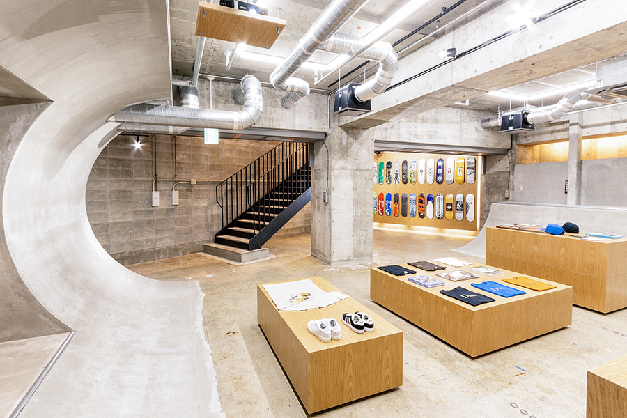 店内の一部はコンクリート製のスケートセクションで構成されており、なんとイベント時に開放されるとのこと。