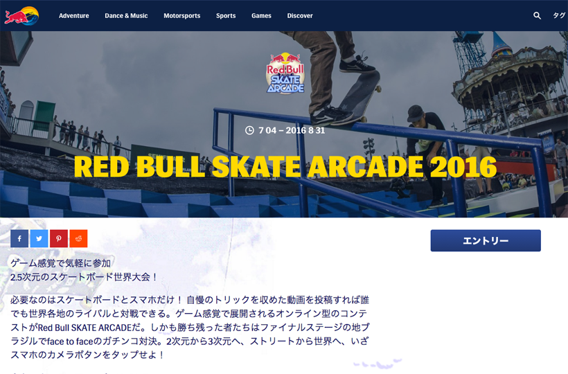 そんなRED BULL SKATE ARCADEの2016年版の日本語サイトが、本日いよいよ本格ローンチ。