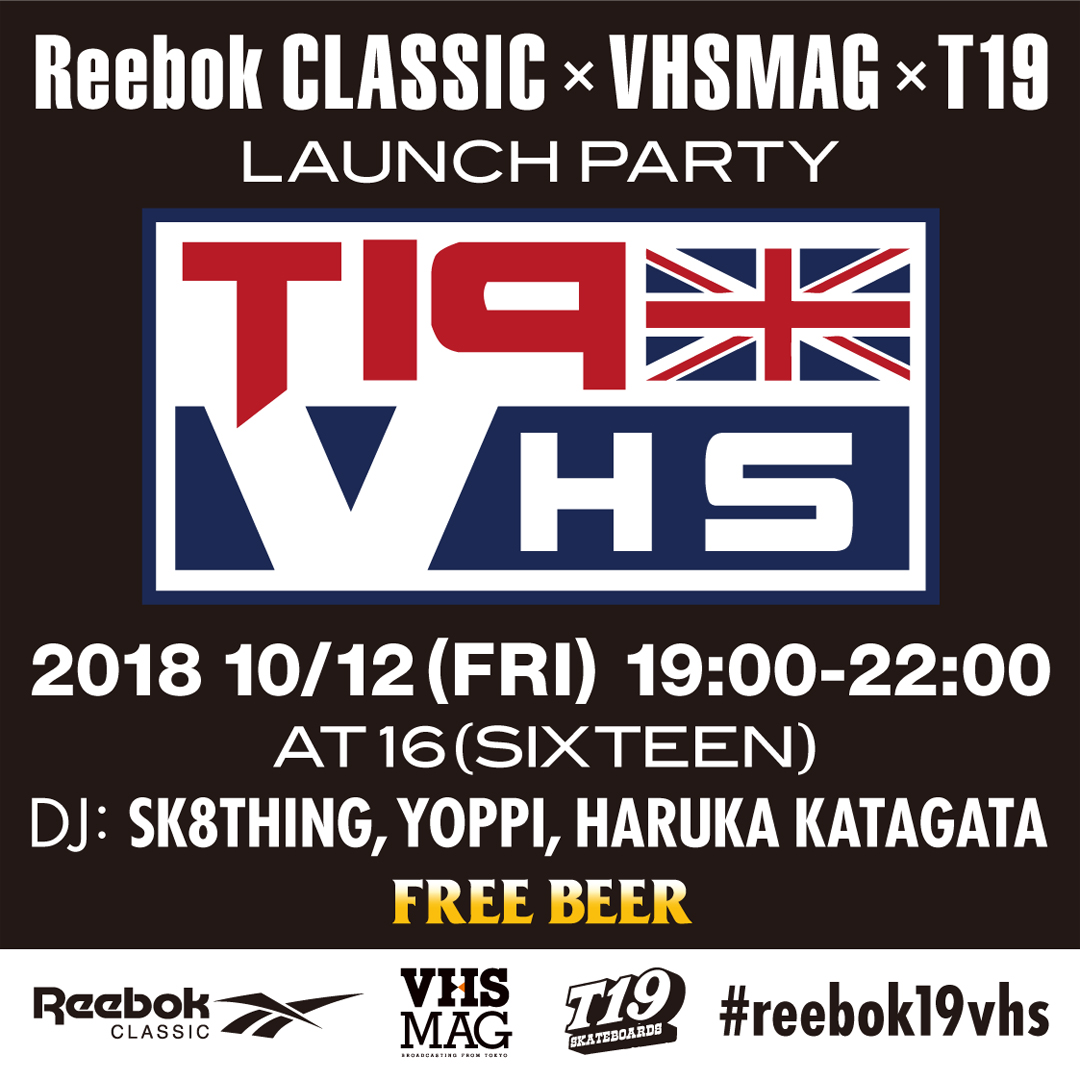 Reebok CLASSIC × VHSMAG × T19によるトリプルコラボコレクションのローンチパーティが10月12日(金)に渋谷16(Sixteen)にて開催。