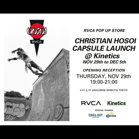 RVCAのChristian Hosoiコレクションのリリースを記念し、11月29日(木)〜12月5日(水)にかけて原宿のKineticsにポップアップストアがオープン。