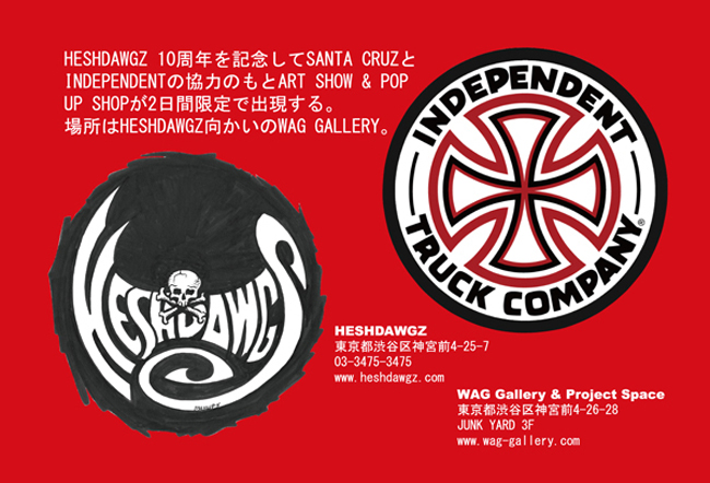 Santa CruzとIndependentによるアートショー&ポップアップストアが10月10日(土)〜11日(日)の2日間にわたって原宿のWag Galleryにて開催。