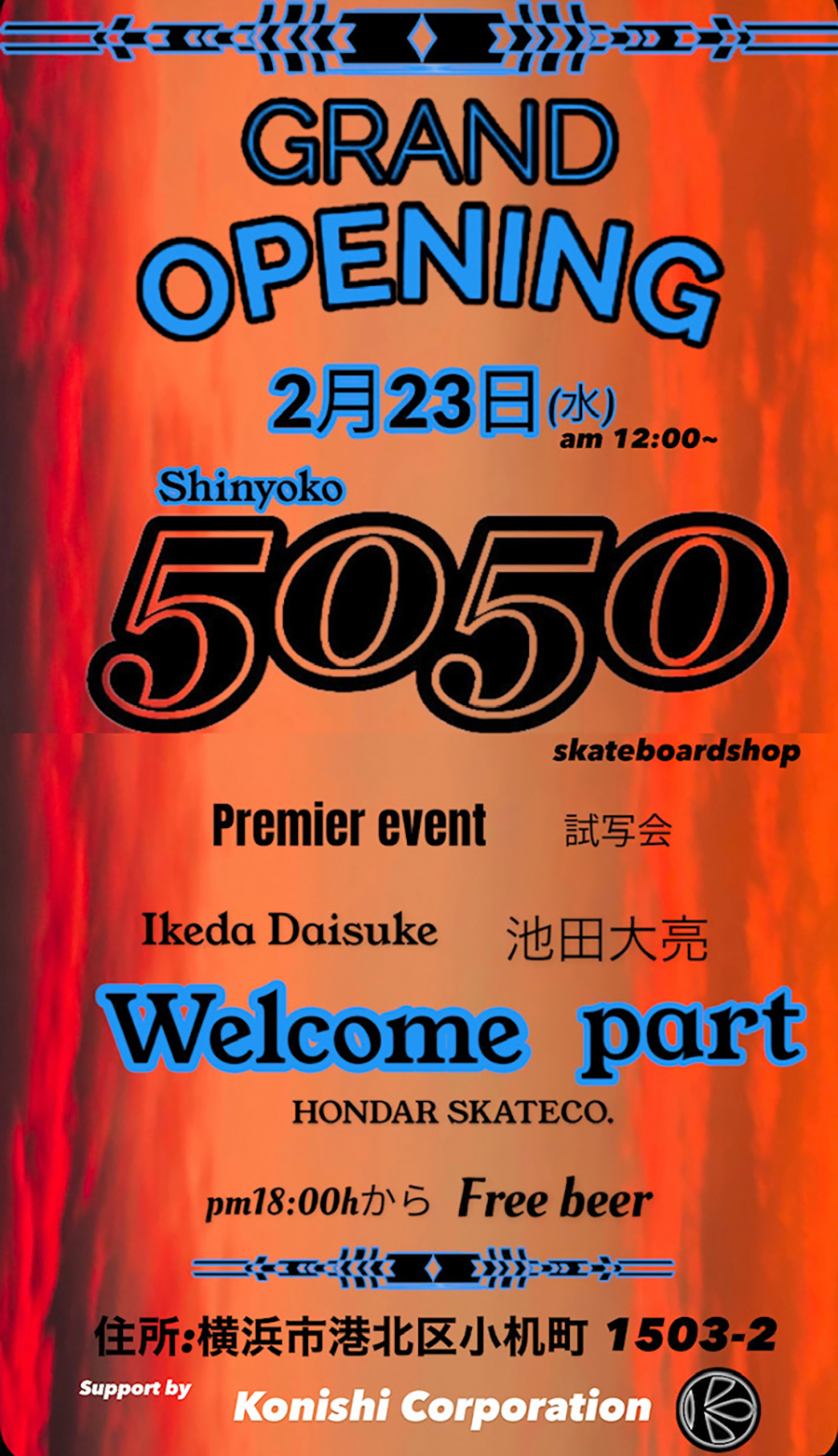 新横浜スケートパークの最寄り駅である小机に5050の新ショップが天皇誕生日(2月23日)にオープン。
