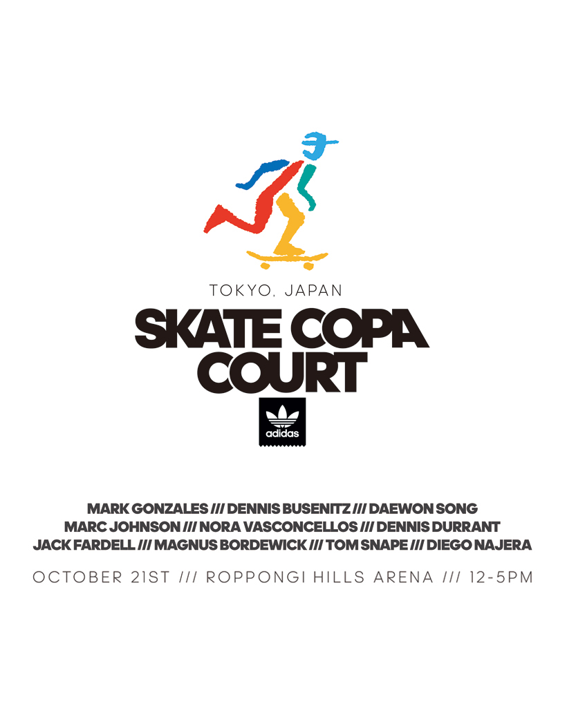 なお、Skate Copa Courtに先駆けて19日(木)には原宿にあるアディダス オリジナルス フラッグシップ ストア トウキョウでサイン会、そして20日(金)には原宿CASE Bにて“The Showcase”と題したエキシビションも開催。