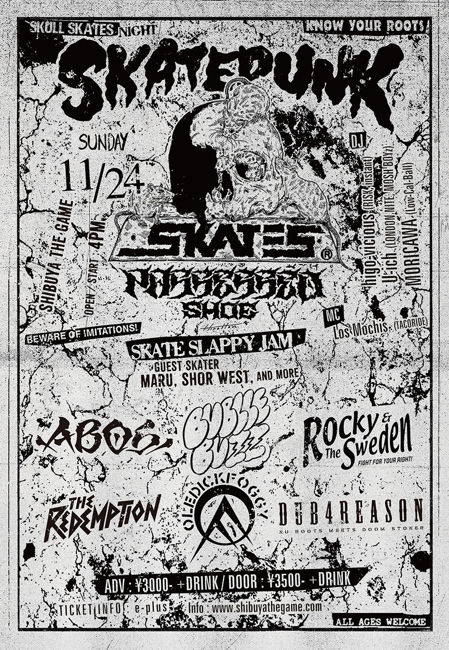 ハードコアバンドのライブ中にフロアでスラッピーのジャムセッションを行うイベント、Skate Punkが11月24日(日)に開催。