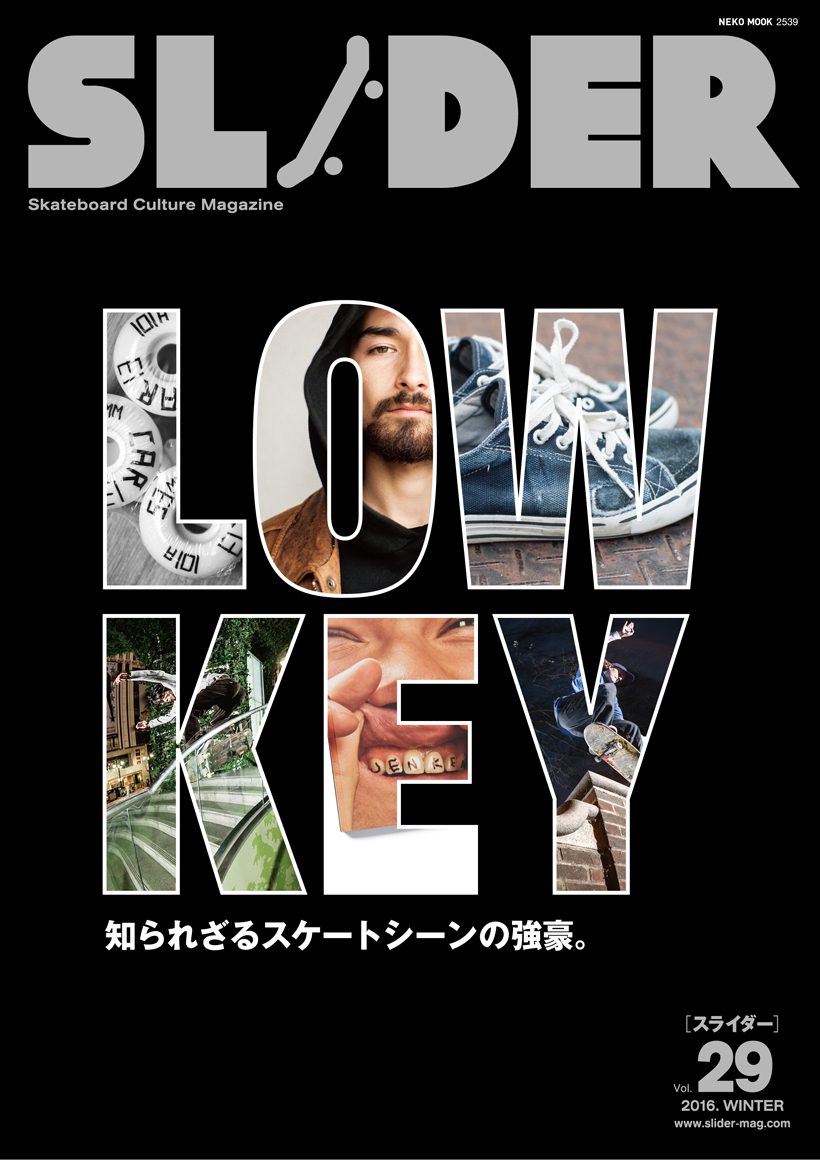 今号のメイン特集は“LOW KEY”と題し、WHIMSY、Possessed、SLDといった新ブランドから船登 晃やショー・ウエストといったスケーターまで、知られざるスケートシーンの強豪をご紹介。
