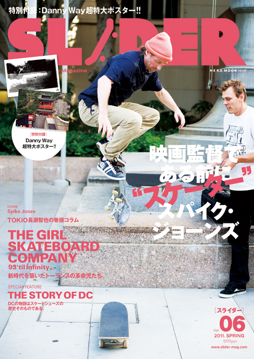 INFO / EVENTS 現地取材を敢行しスケートのヒストリーやカルチャーを探るスケート誌Sli… ──SLIDER VOL. 06 2011.04.04 現地取材を敢行しスケートのヒストリーやカルチャーを探るスケート誌Sliderの最新号がリリース。 今回はGirlとDCの2大特集という豪華な内容。本日より書店やスケートショップで発売中。