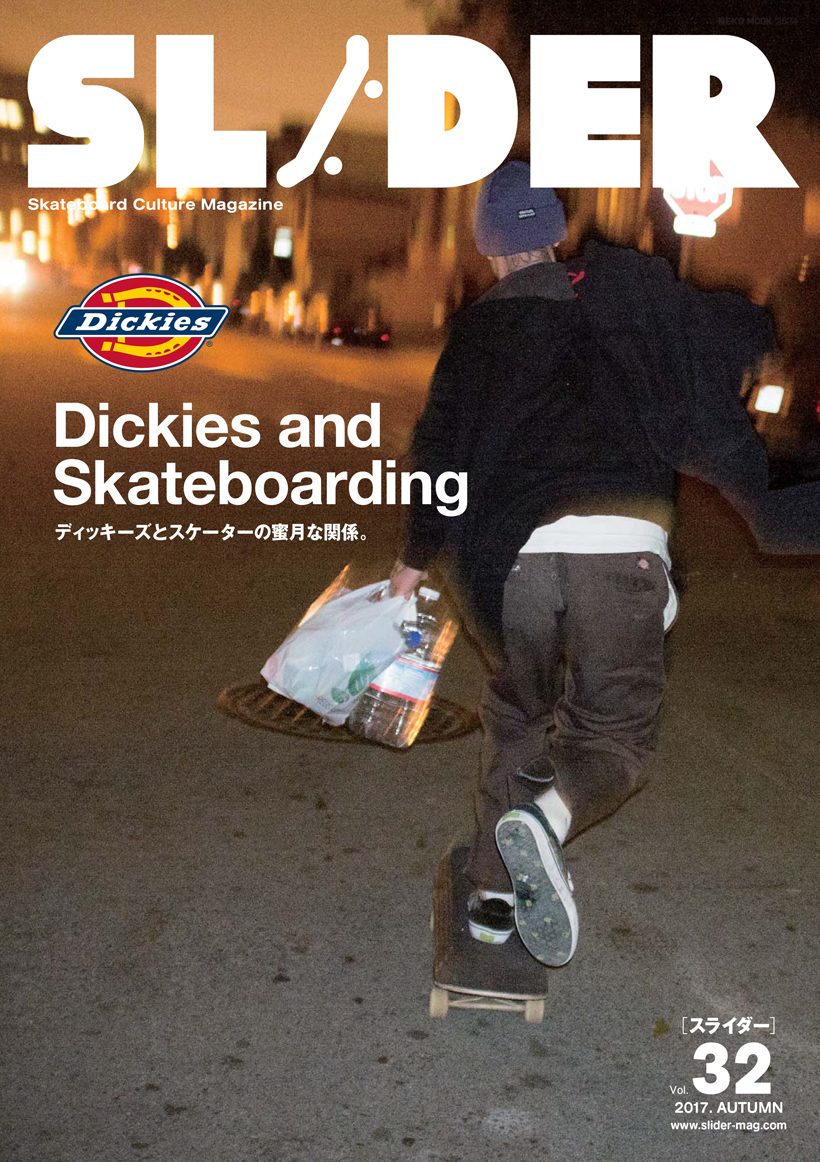 特集テーマは「Dickies and Skateboarding」と題し、Dickiesとスケーターとの蜜月な関係に迫る。