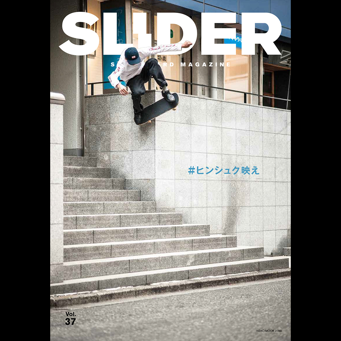 SLIDER最新号(Vol. 37)が12月29日(土)に発売。掘米雄斗、ビル・ストロベック(Supreme)、エリック・ヘイズ(HUF)などのインタビューに加え、巷を騒がせた「渋谷の迷惑スケボー」について警視庁に問い合わせてみたり、世界1ゲトーなゲリライベントUnko Cup 2018の特集記事などスケッチーな案件が盛りだくさん。グラビア企画CHAOSも濃ゆいメンツばかり。そしてFeatureは、向かうところ敵なしのストリートキラー本郷真太郎とコンクリートジャングル大帝ロニー・サンドヴァル。スケートボード文化が詰まった基地外雑誌で年越しマザー・フ◎ッカー!! お求めは、最寄りのリアルスケートショップにて。「インスタ映えよりヒンシュク映え」