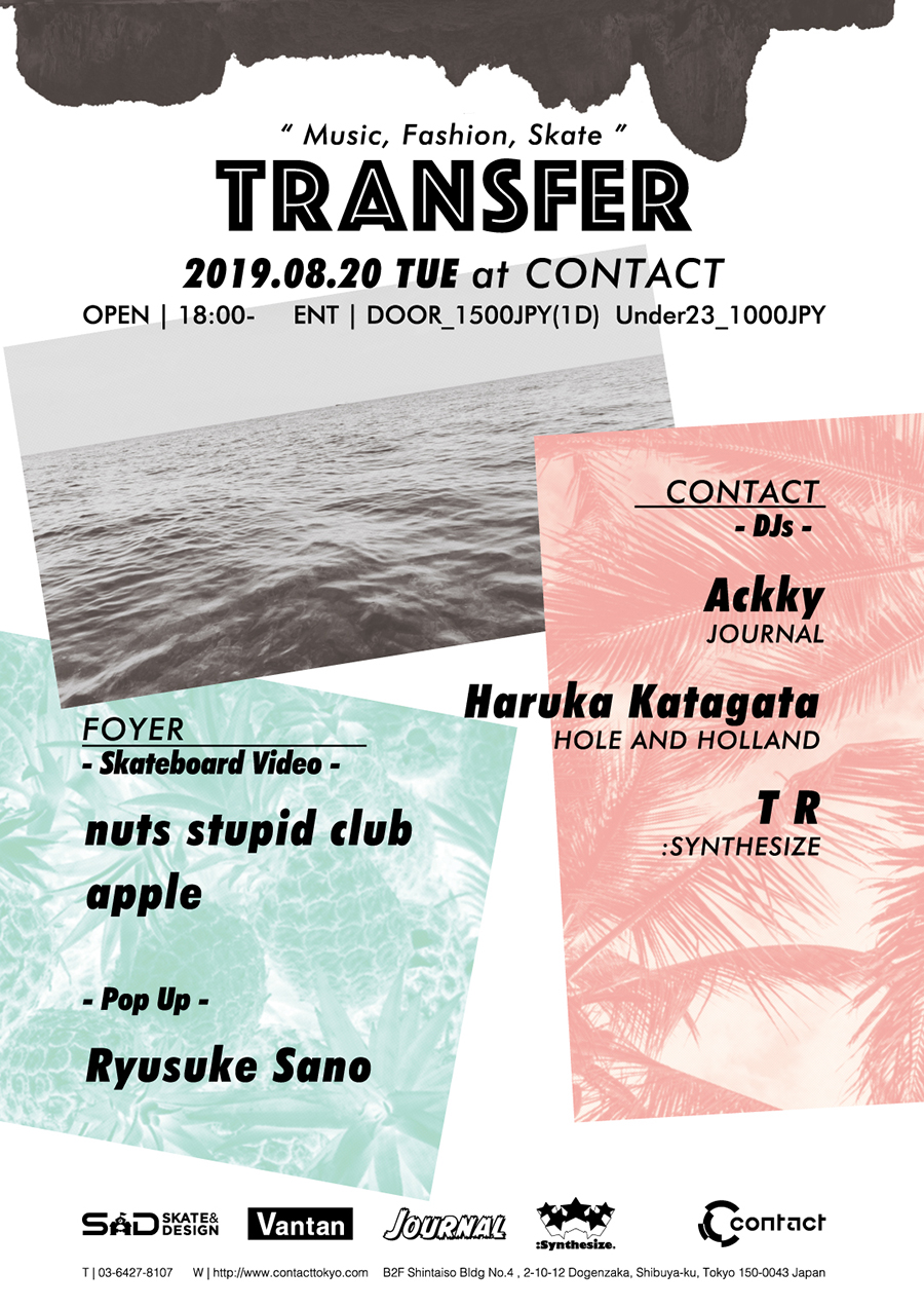 スケートボード×ファッション×ダンスミュージックをコンセプトにしたパーティ、Transferが8月20日(火)に開催。