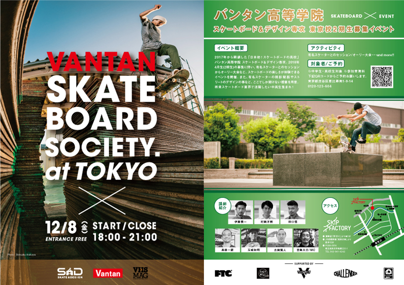 バンタンデザイン研究所 高等部東京校 スケートボード&デザイン専攻のキックオフインベントが12月8日(金)に所沢・Skip Factoryにて開催。