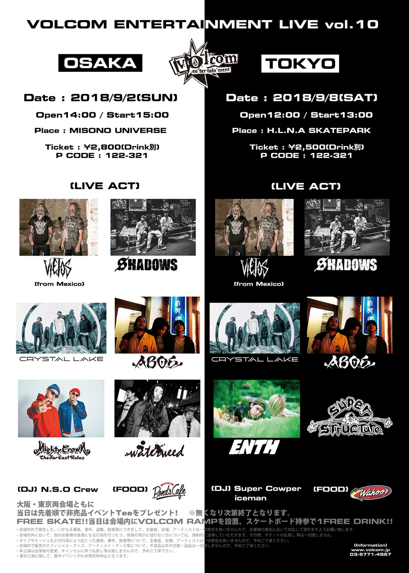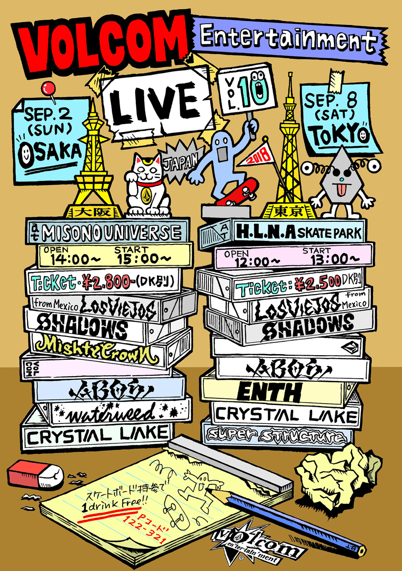 不定期で行われているVolcomのライブイベント、Volcom Entertainment Live Vol. 10が東京と大阪で開催。