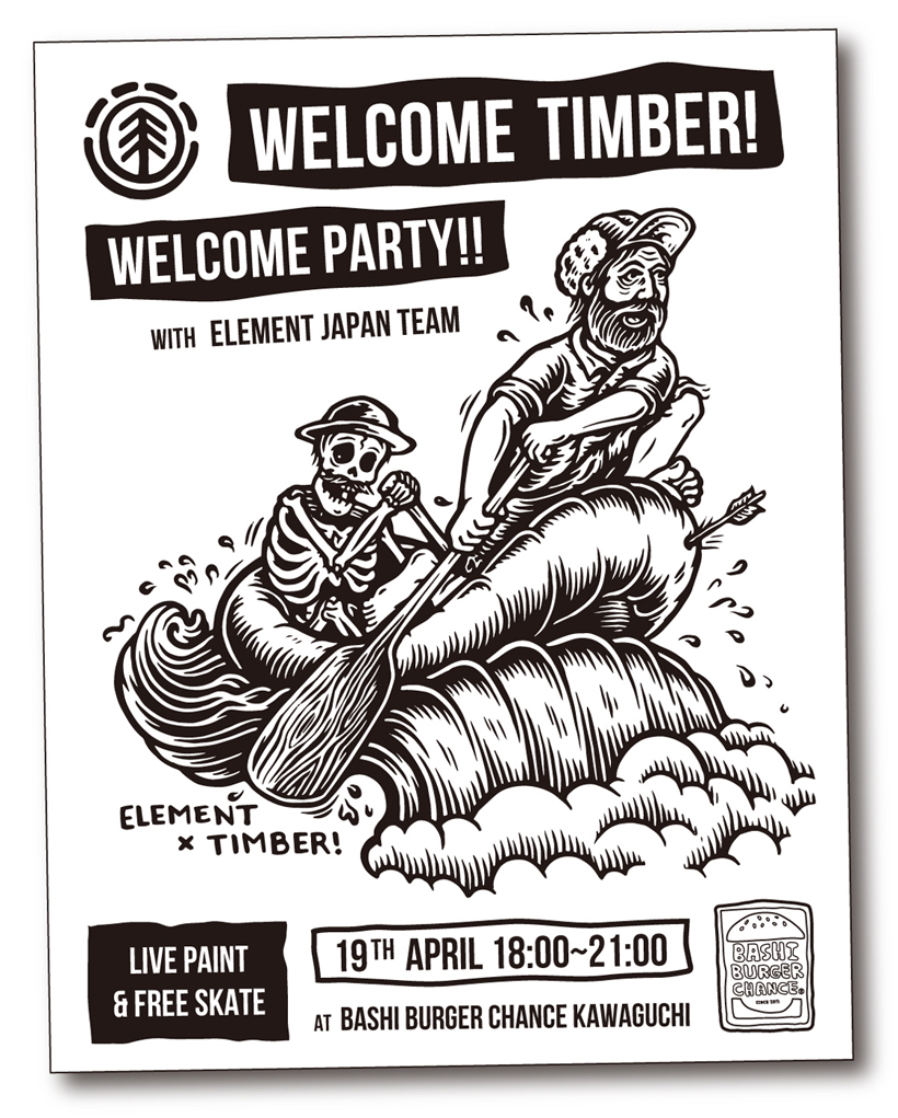 当日はスケートパークを無料開放し、TIMBER! によるライブペイント、Elementジャパンチームによるスケートセッションを実施。