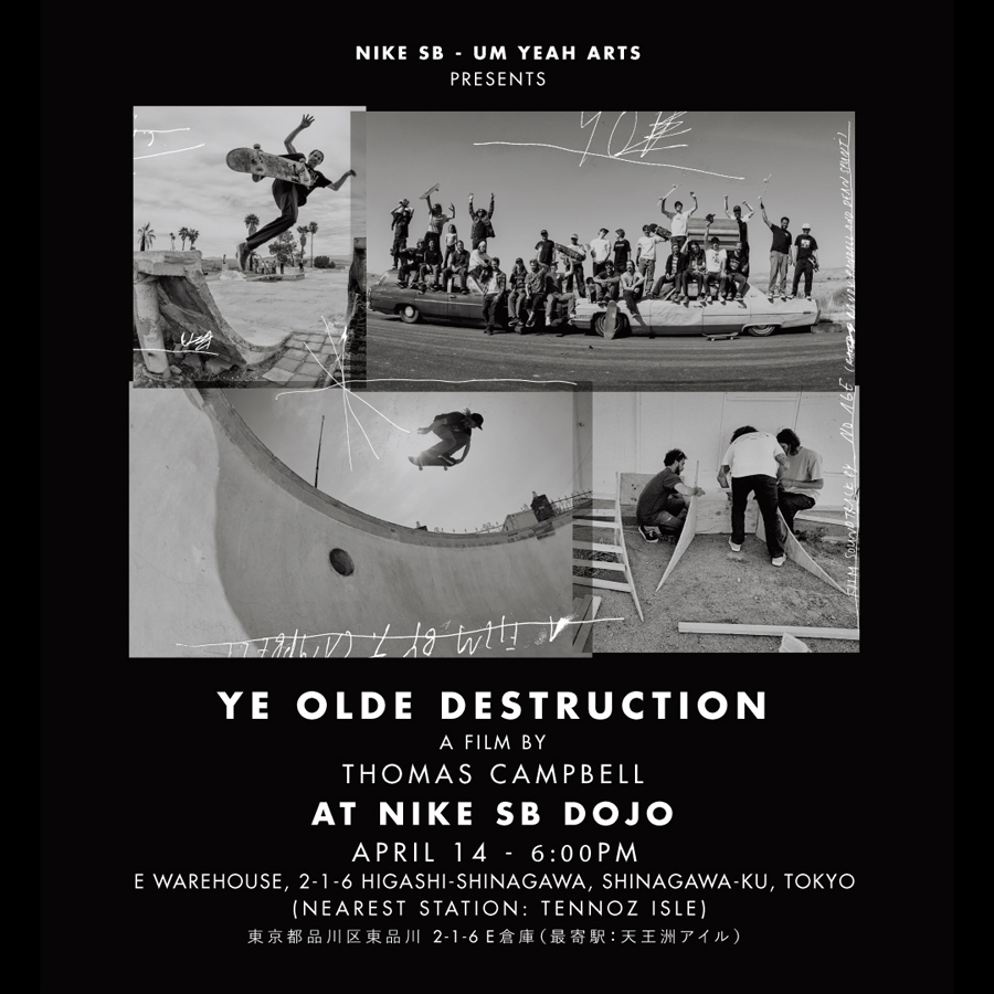 ビジュアルアーティストのトーマス・キャンベルが手がけるスケートビデオ『YE OLDE DESTRUCTION』の試写会が4月14日(日)にNike SB dojoにて開催。