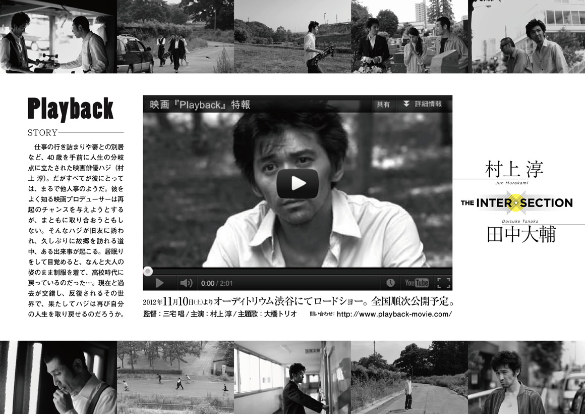 1本の映画の公開を機に、10数年ぶりに再会を果たしたふたり。スケートボードに明け暮れた10代、それぞれの道へと進んだ20代。己の道を成熟させる30代を経て、村上 淳と田中大輔は再び交差する。映画『Playback』は、村上自身の半生を描いた原点回帰の物語。出会い、決別、再会、すべてはスケートボードが好きだったからこそ自身のアイデンティティの礎となるスケートボードを、旧友と振り返る。