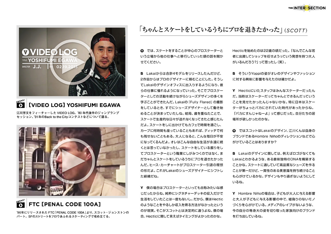 スケートコミュニティで随一の美的感性を持つふたりの交差-LAKAIのシューズデザイナーを務めるSJことスコット・ジョンストン、そして日本のスケートシーンの草創期を支えトレンドセッターとして知られるYOPPIこと江川芳文。ふたりの出会い、互いの影響、シグネチャーシューズ、プロスケーターを退いた後の生活など、スケートだけでなくファッションにも精通するふたりに話を聞いた。