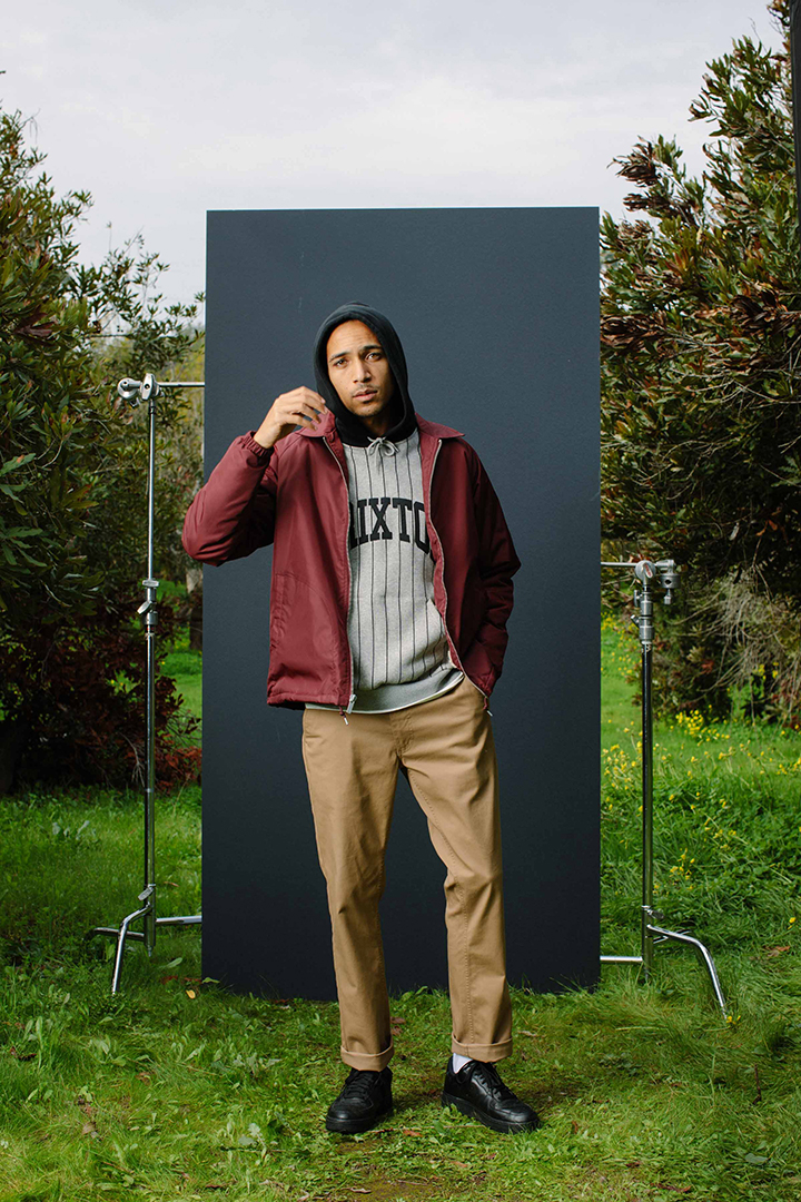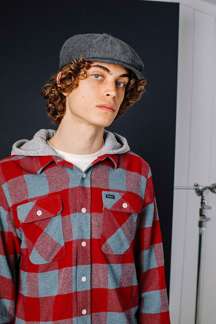 LOOKBOOK シンプル・イズ・ベスト ──BRIXTON - HOLIDAY 2019 2019.12.13 バックパネルを立てることであらゆる場所に簡易スタジオが完成。 ベーシックなデザインで魅せるBrixtonのHolidayルックブック。 StraightSix Ltd. / www.brixton.com