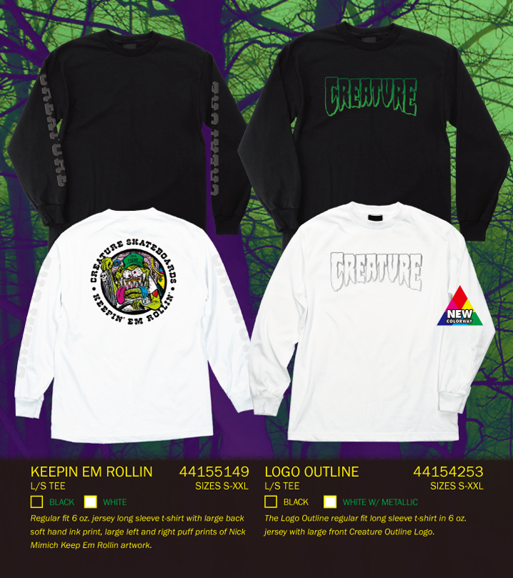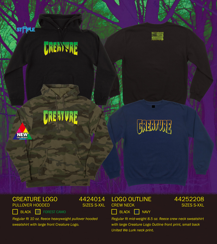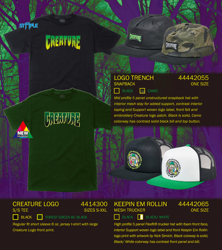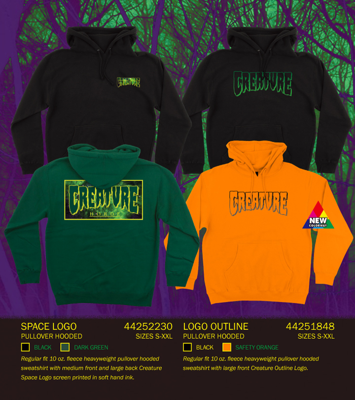 LOOKBOOK ヘッシュ野郎どもへ ──CREATURE - FALL 2021 APPAREL 2021.10.07 激ヤバなライダー陣と決してブレることのないホラーテイスト。 ヘッシュなブランドCreatureのアパレルラインの最新カタログ。 Hasco Enterprises / www.hasco.co.jp