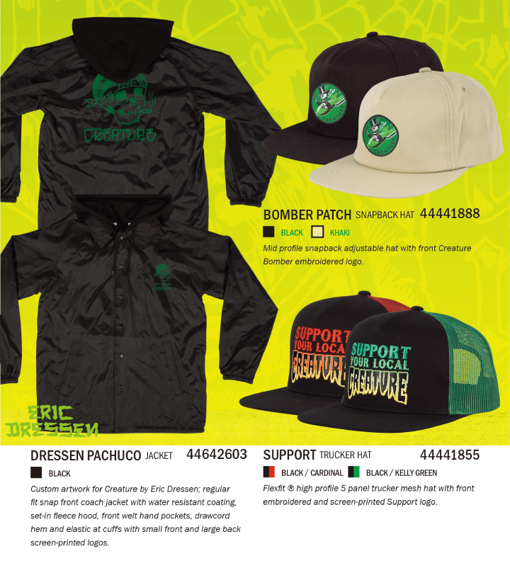 LOOKBOOK あなたの知らない世界 ──CREATURE - SUMMER 2019 APPAREL COLLECTION 2019.07.04 creature-summer-2019_01 creature-summer-2019_03 creature-summer-2019_04 creature-summer-2019_05 creature-summer-2019_06 creature-summer-2019_07 creature-summer-2019_08 ブラック×グリーンがブランドカラー。 夏を涼しくするホラーなアイテムはいかが? Hasco Enterprises / www.hasco.co.jp