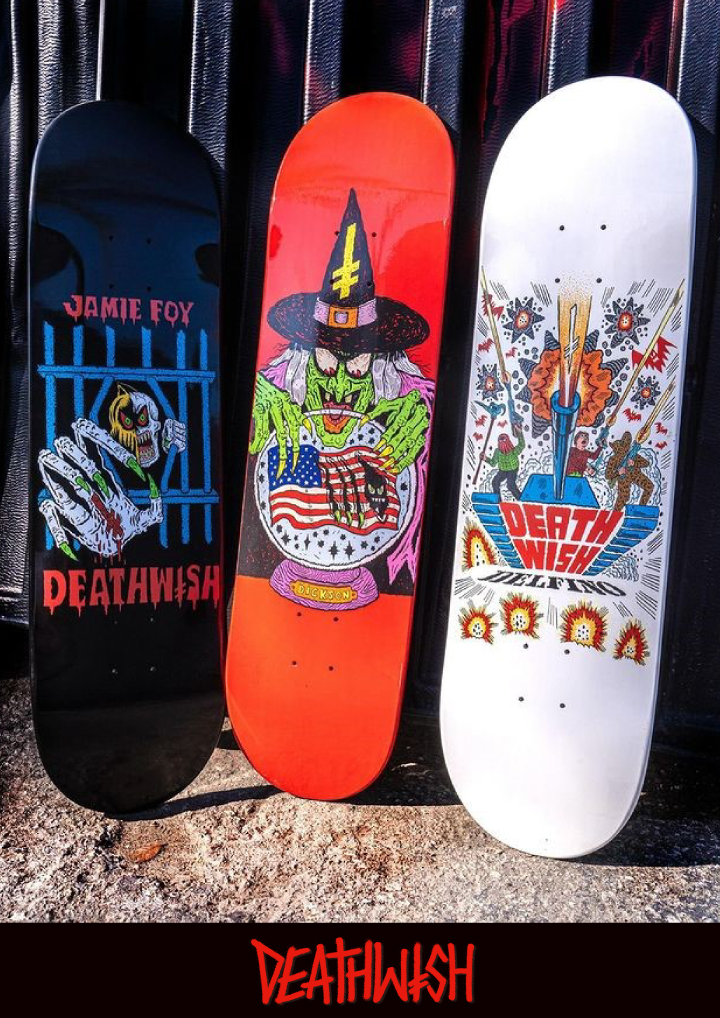 LOOKBOOK 硬派なデッキカンパニーの最新作 ──DEATHWISH - SUMMER 2024 2024.06.06 Deathwishの夏物ルックブック。 夏のグラフィックはホラーがイチオシ! Sonik Distribution / www.sonik-dist.com