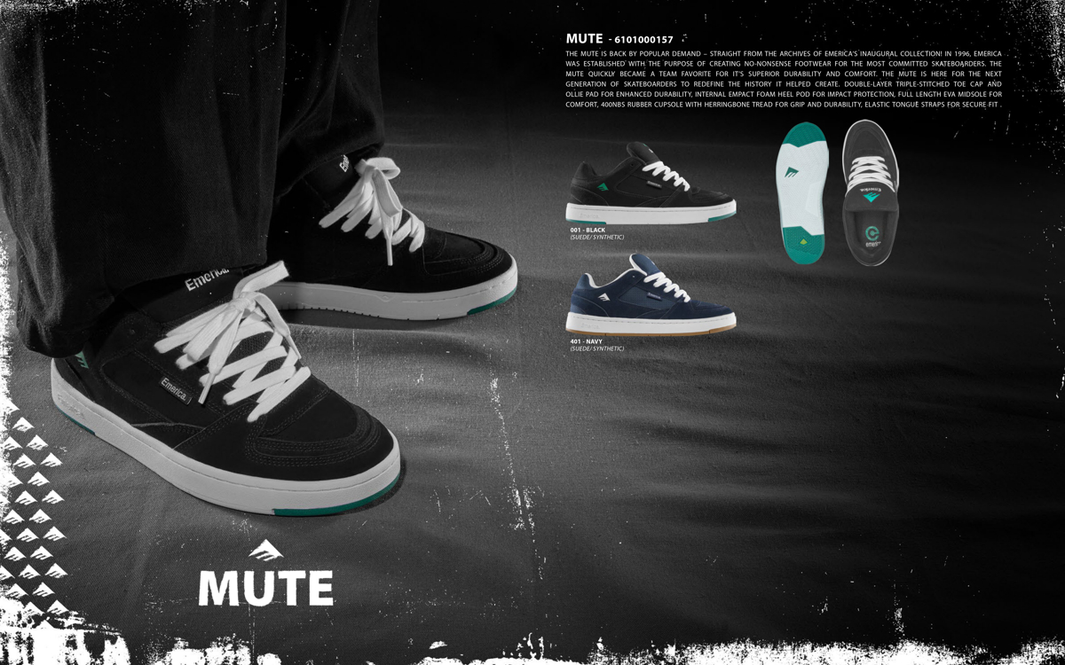 LOOKBOOK 初期モデルがカムバック ──EMERICA - SPRING 2025 2025.03.13 Emericaの春物新作カタログ。 ‘96年にリリースされたMuteモデルが復活。 問い合わせ Sonik Distribution 03-5245-3200 / www.sonik-dist.com @sonik_dist