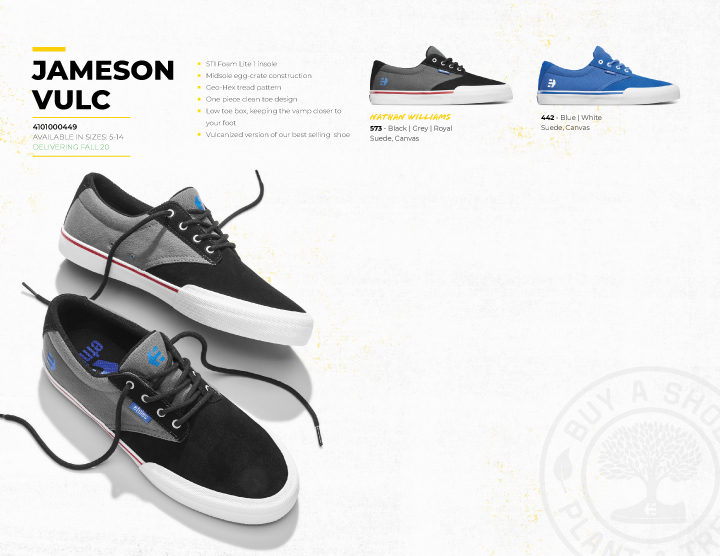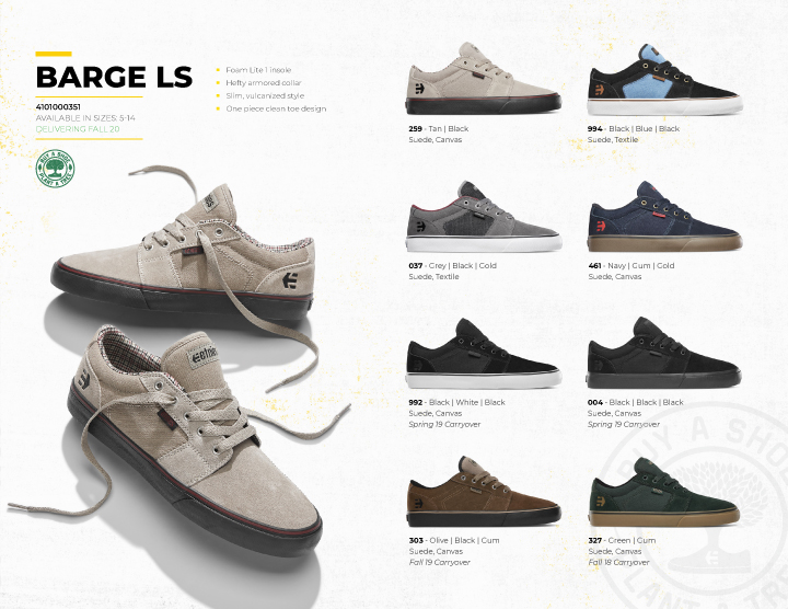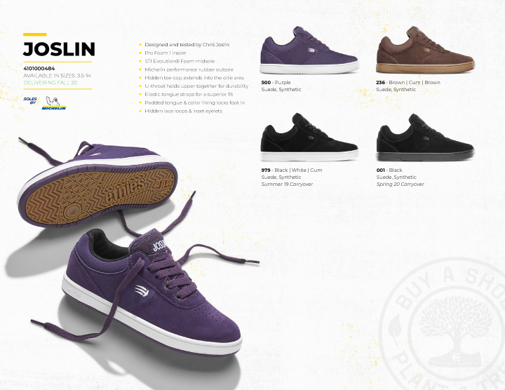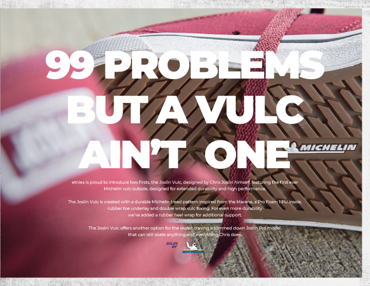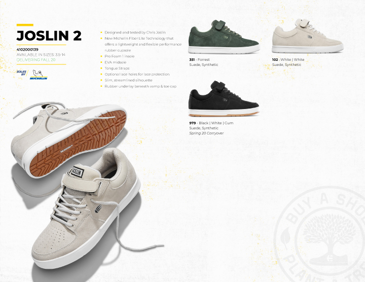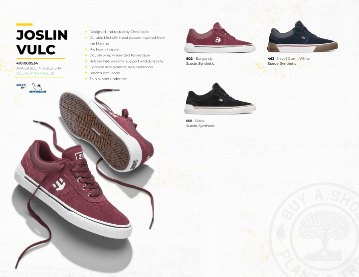 LOOKBOOK JOSLINにヴァルカが仲間入り! ──ETNIES - FA 20 2020.09.30 Michelinソールにヴァルカナイズがデビュー。 アースカラー中心の配色で魅せるetniesの最新カタログ。 Sonik Distribution / www.sonik-dist.com