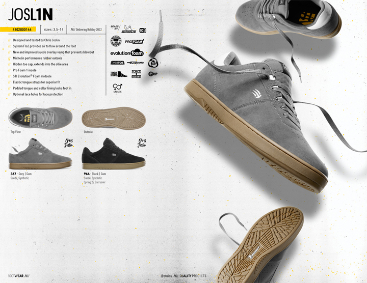 LOOKBOOK 注目の3モデル ──ETNIES - HOLIDAY 2022 2022.12.08 Estrella、Marana、Joslinの3本柱で勝負。 etniesのHoliday 2022の最新カタログ。 Sonik Distribution / www.sonik-dist.com