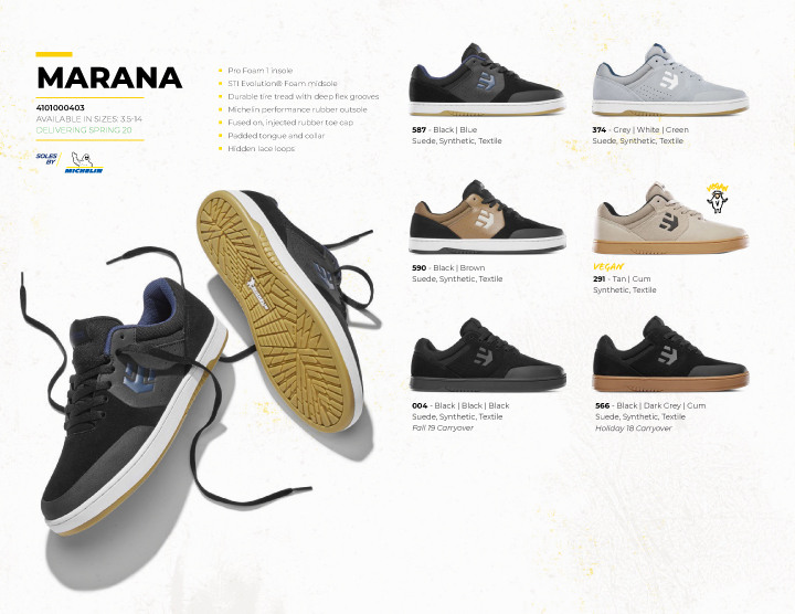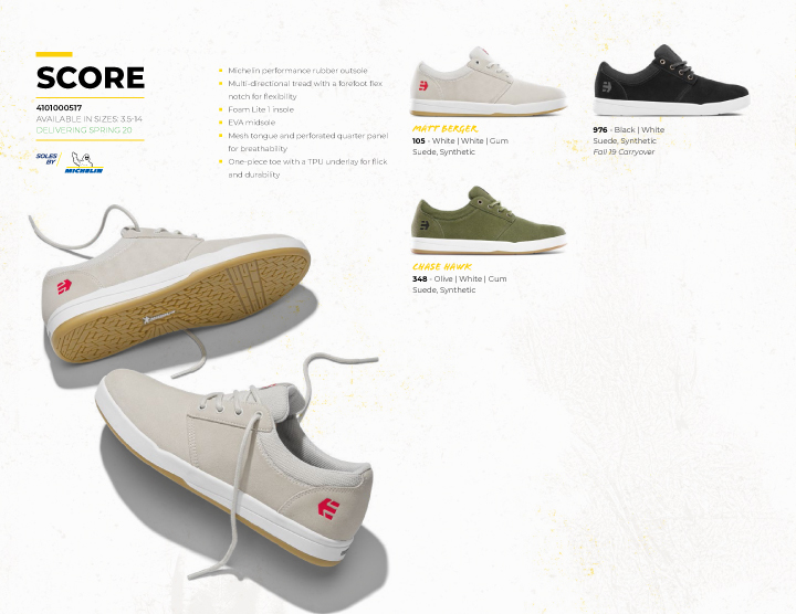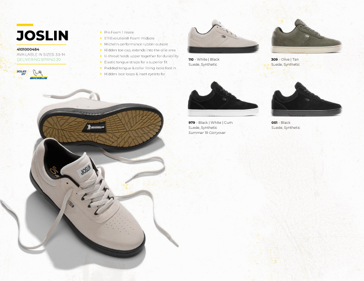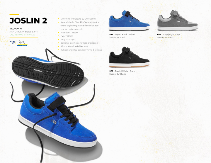 LOOKBOOK MICHELINの高品質ソール搭載 ──ETNIES - SP20 2020.03.05 クリス・ジョスリンの最新作、Joslin 2が堂々デビュー。 Michelinソールが際立つetniesの最新カタログ。 Sonik Distribution / www.sonik-dist.com