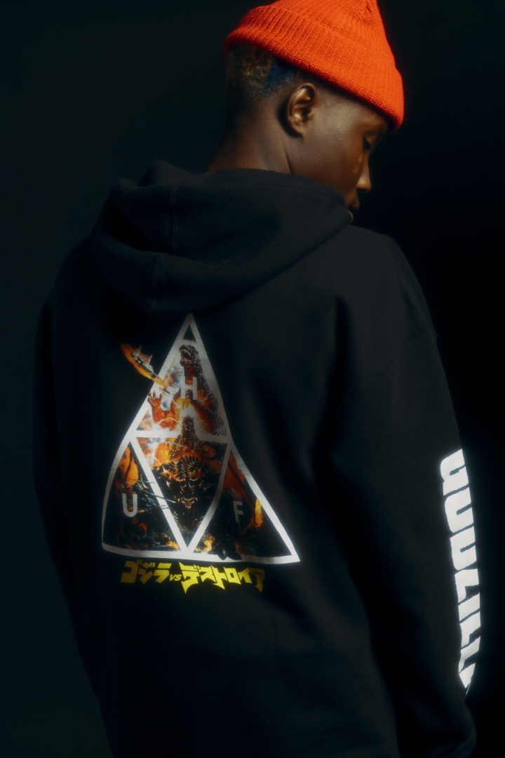 LOOKBOOK 破壊神、日本再上陸! ──GODZILLA VS HUF LOOKBOOK 2020.06.25 核実験によって太古の眠りから目を覚ましたゴジラ。 日本が世界に誇る巨大怪獣とHUFのコラボコレクションは6月26日(金)に発売。 HUF JAPAN / hufworldwide.jp