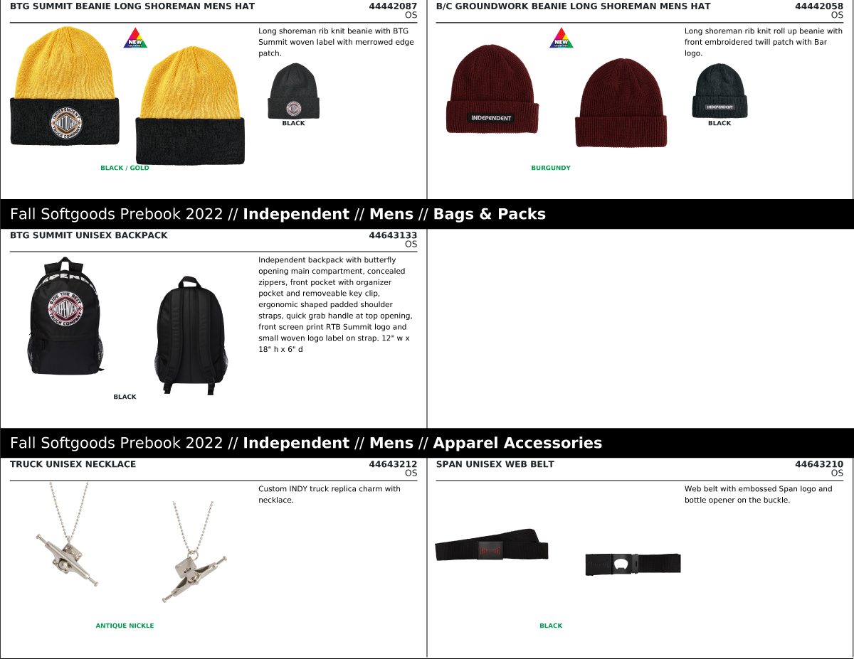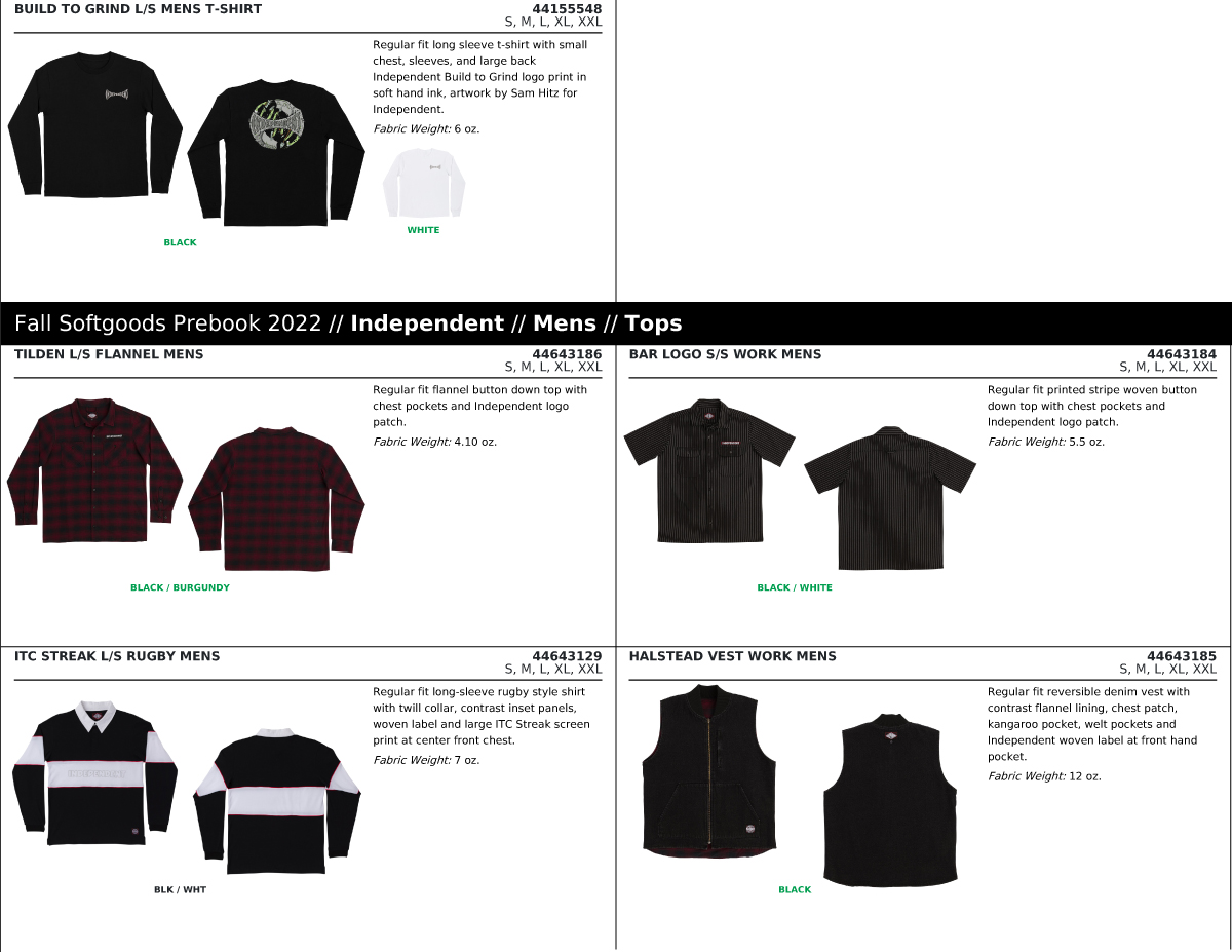 LOOKBOOK 小物類にも注目! ──INDEPENDENT - FALL 2022 APPAREL 2022.11.16 Independentのアパレルラインの最新カタログ。 シンプルで無骨なアイテムがこのブランドの魅力。 Hasco Enterprises / www.hasco.co.jp