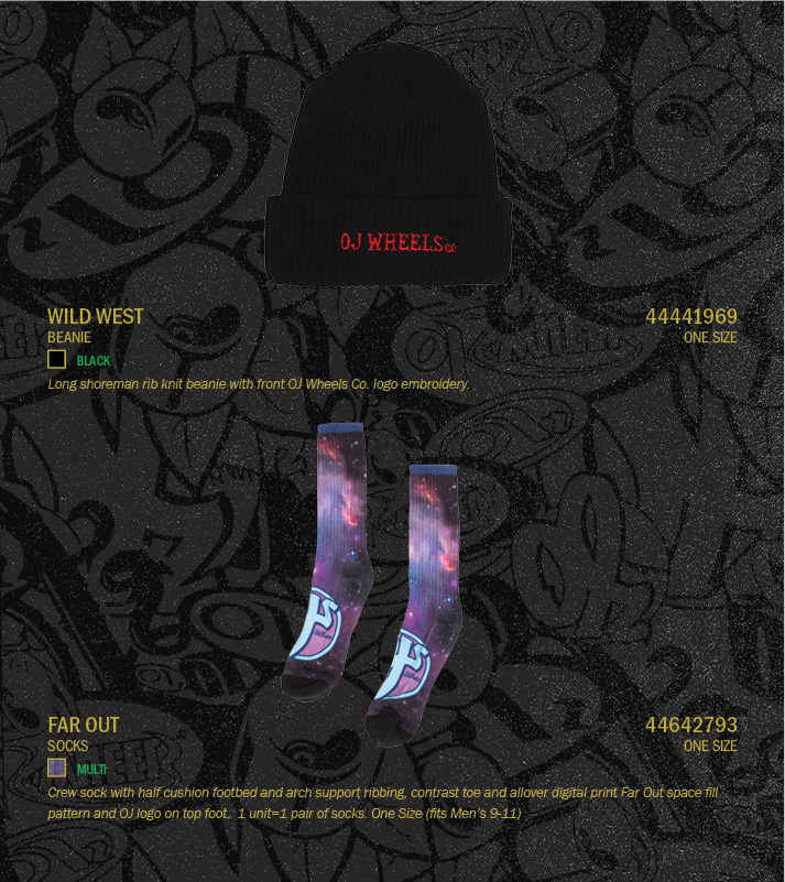 LOOKBOOK 三本木も所属! ──OJ WHEELS - FALL 2020 2020.11.12 NHS傘下のウィールブランドの秋物カタログ。 カリフォルニア産のフレッシュなOJをお届け。 Hasco Enterprises / www.hasco.co.jp