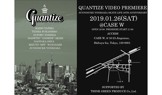 フィルマーのカメキョーが手掛ける『Quantize』の試写会が1月26日(土)に原宿のCASE Wにて開催。 若手からベテランまで、7名の東京出身のスケーターをフィーチャーした作品…