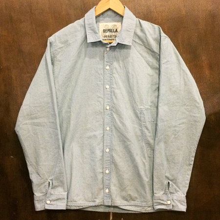 福島県いわき発のアパレルブランドRemilla。思いもよらないようなセンスでデザインされているのに、仕上がりはストレートでシンプル、色々な服装にも来合わせることが出来ちゃう、そんなアイテムを展開してくれています。色々なアーティストやスケーターなんかもサポートしていて逗子のUNOWNのボス高山 仁くん、フランスのMagentaのデザイナー でプロスケーターのSoy Pandayなどなど…。このブランドのシャツは毎シーズン素晴らしい作りの物ばかりなんです。着やすさやシルエットも本当に素晴らしいし、なによりその思い切った切り返しや、ポケットの位置の面白さなど、それらの基本的な作り方とはちょいと違った仕様になってるんです。今回はこのブランドには少し珍しいチェック柄の生地と、らしいシャンブレー生地の2タイプが届いてます。どちらもホント素晴らしいですが、個人的にはチェック柄の生地の方にすっかり打ち抜かれてしまい夜も眠れません。