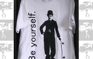 (ちなみに↑は10年ほど前に俺自身がデザインし現在もハンドメイドで印刷しているチャップリンTシャツ)