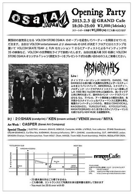 ぎりぎりの告知ですが、2/3(sun)VOLCOM OSAKA Opening Partyがあります。