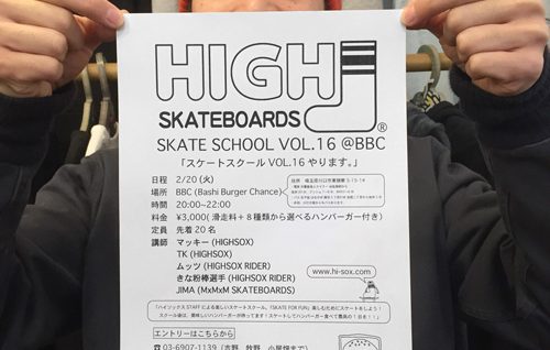 今夜はHIGHSOX SKATE SCHOOL VOL.16です! そのためハイソックスは本日、18:00までの営業とさせていただきます🙏 ご理解のほど、よろしくお…