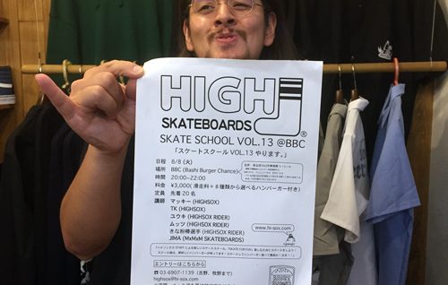 今夜はHIGHSOX SKATE SCHOOL VOL.13です! そのためハイソックスは本日、 18:00までの営業とさせていただきます🙏 ご理解のほど、よろしく…