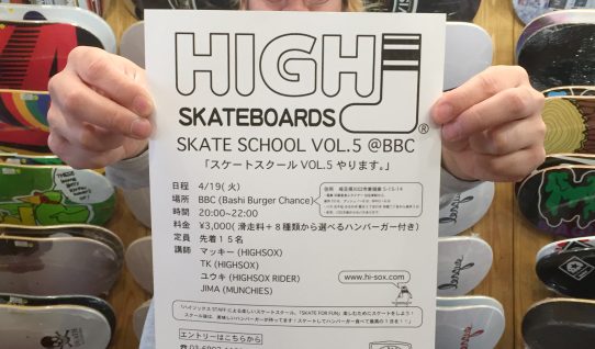 今夜はHIGHSOX SKATE SCHOOL VOL.5です! そのためハイソックスは 本日、18:30までの営業とさせていただきます🙏 ご理解のほど、よろしくお…