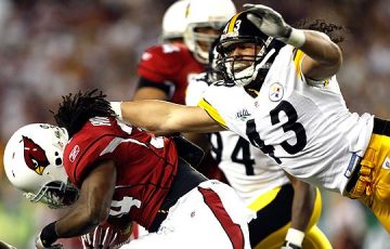 注目おもしろキャラはボールがあるところに必ず飛んでくるピッツバーグ・スティーラーズのディフェンス43番「ポラマル」。どこからともなく飛んでくる。飛んでくるから。