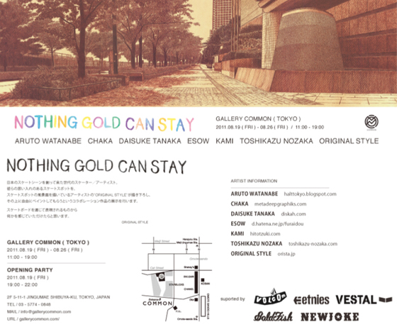 〒150-0001 東京都渋谷区神宮前5-11-1 2F TEL:03–5774–0848 Mail:info@gallerycommon.com