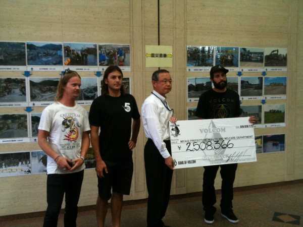 途中、仙台に立ち寄り、世界中のVolcomから集まった義援金を宮城県庁に納め、