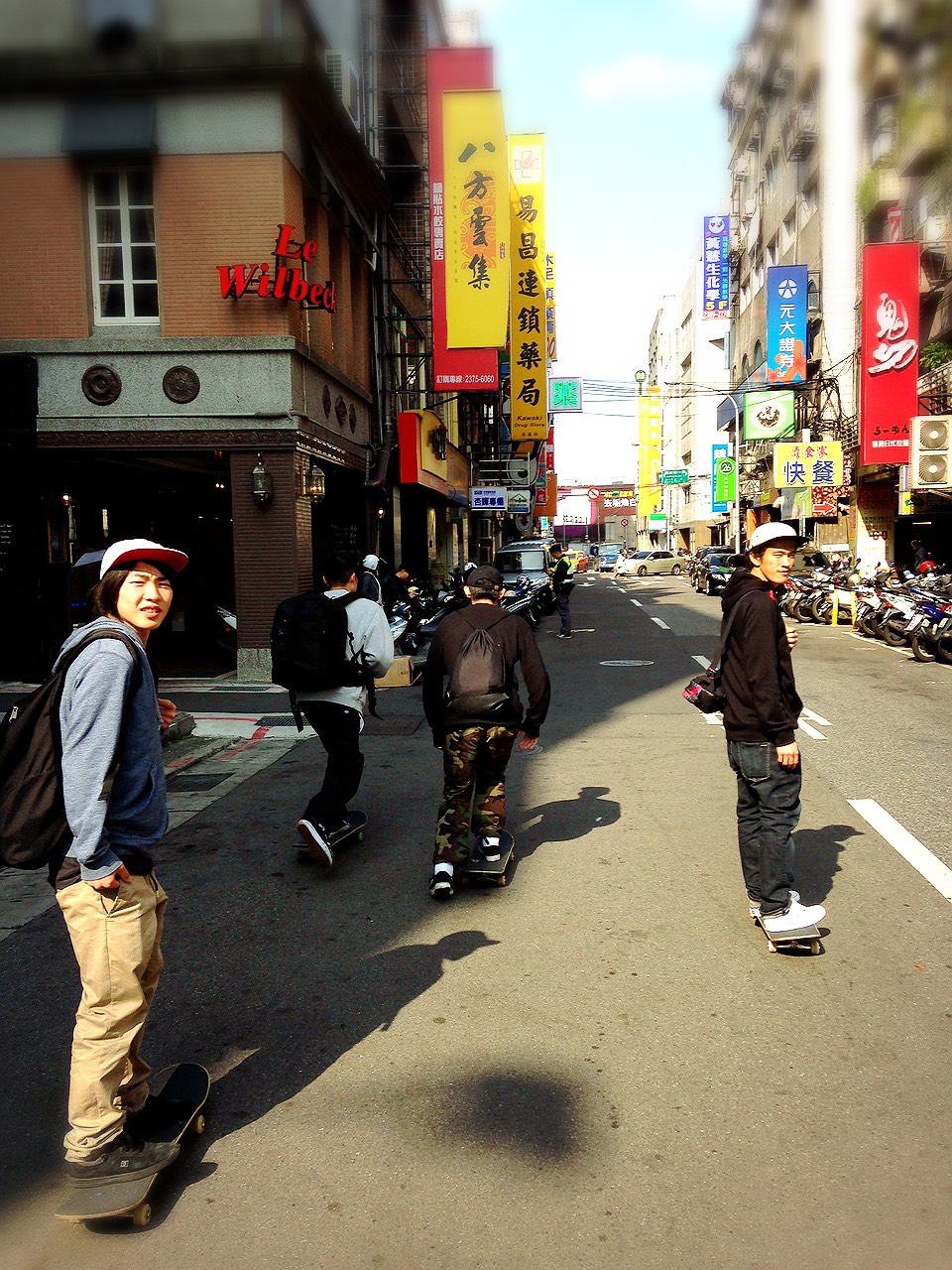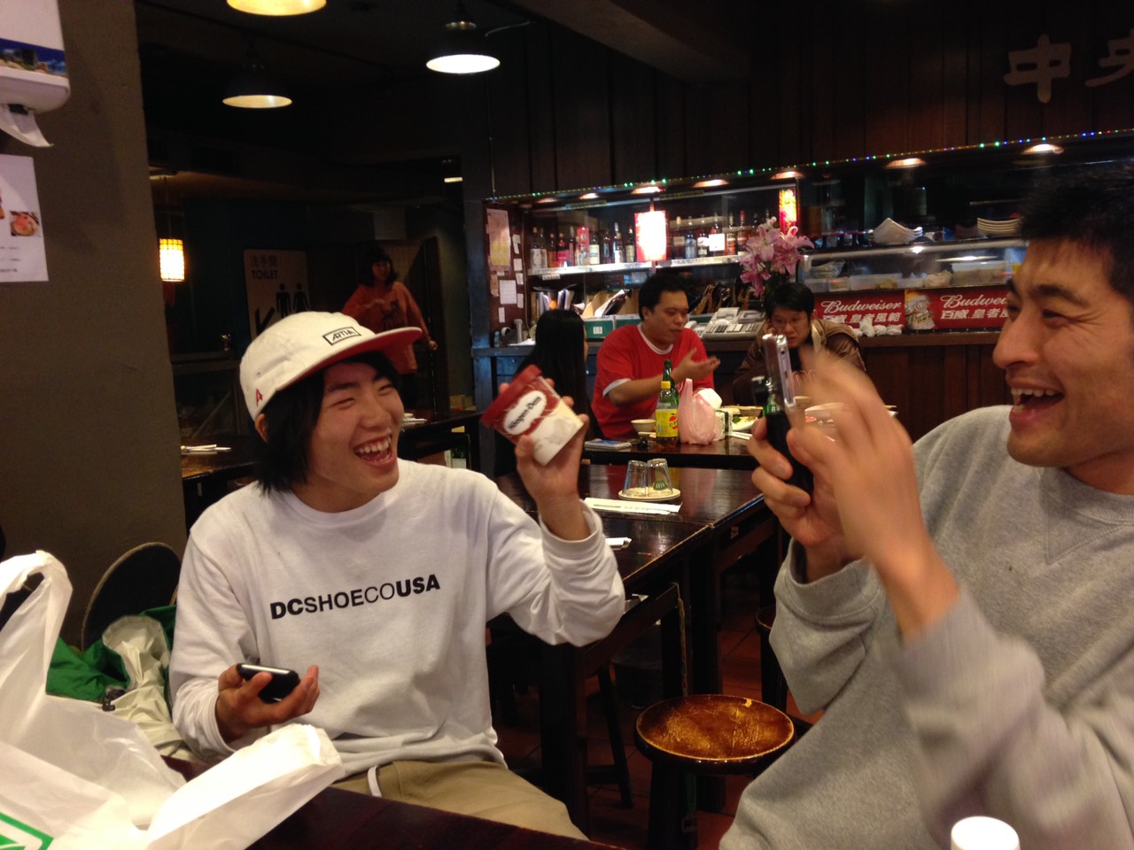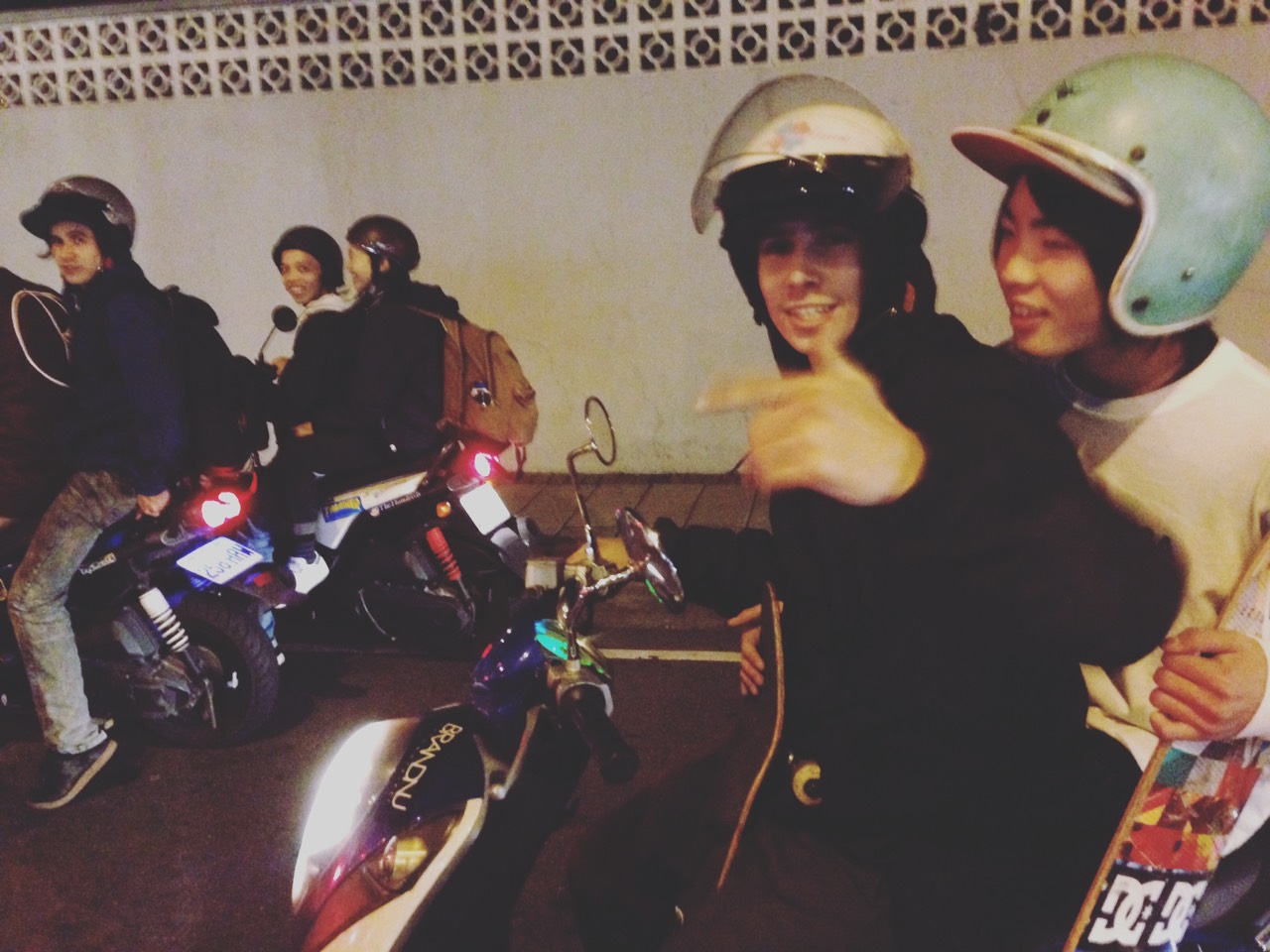 撮影の合間を縫ってのスケートボードは言葉の壁も超えます。