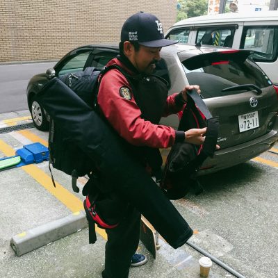 @撮影には安定のフィルマーのヒデ君と乗り込みました。今回はいつもよりも機材が増えていてびっくり。
