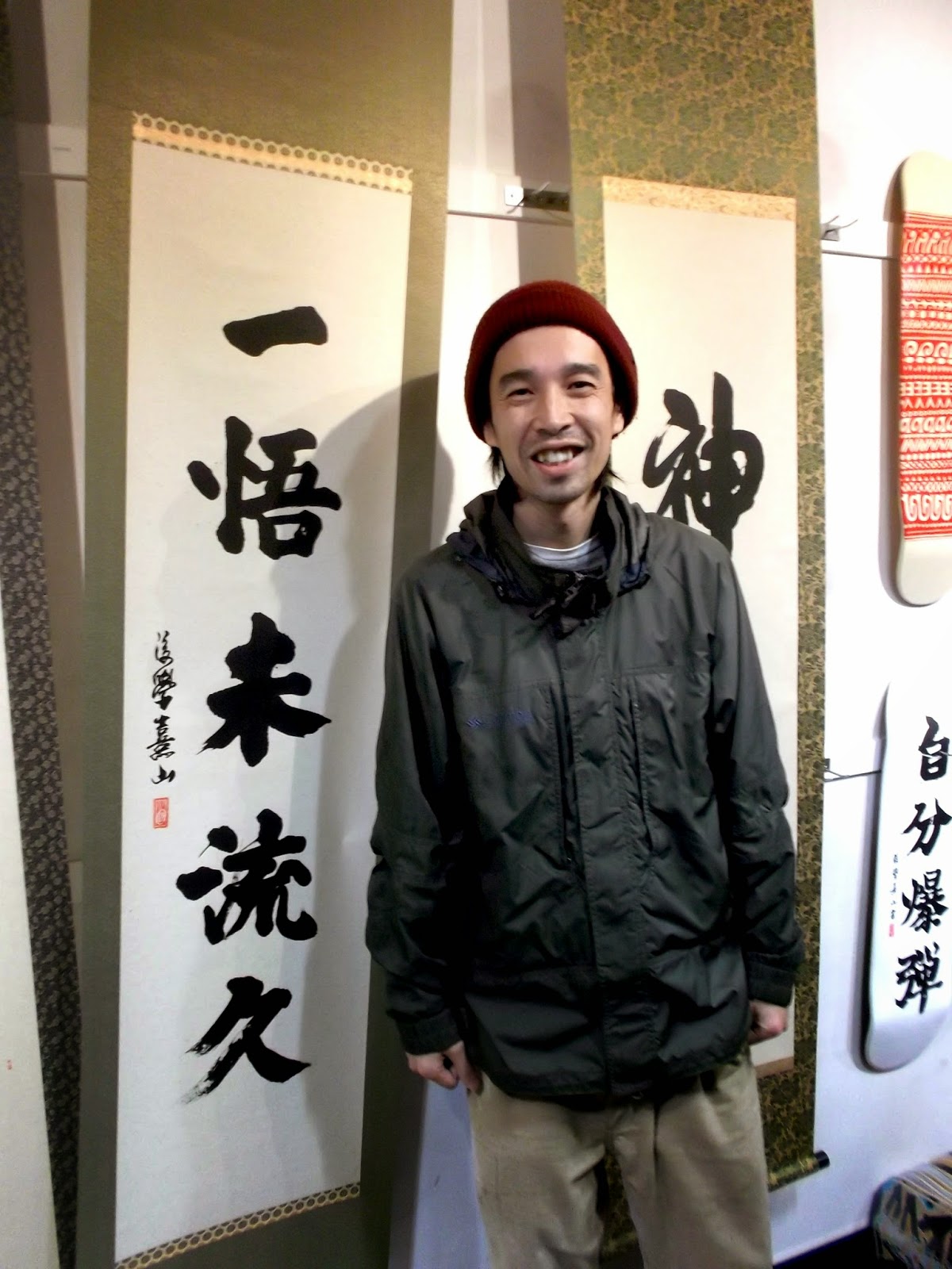 グラフィティライター出身の書道家。二十歳で単身渡米。二十四歳の時、アフリカ最高峰キリマンジャロ山登頂を期に、日本男子の矜恃を深醒、それまでの落書き行為をネクストレベルの芸術表現へと昇華させる事を決意。帰国後、日本見聞修行の名の下、北海道宗谷岬~鹿児島県佐多岬間を徒歩で縦断。その後書道師範学校へ入学し、書道史、書道哲学及び書道芸術を学び、基礎古典の臨書による楷・行・草・篆・隷・仮名の各書体を研鑽し筆技を磨く。特に篆書体に於いて最も才能を開花させ、平成十六年、日本書道学会展学会賞を授賞。同年、文部科学省認可の書道師範免許を取得。宗派を超えて仏教界とも交流が深く、密教寺院の常勤淨書師として八年間、梵字の修練にも勤しむ。