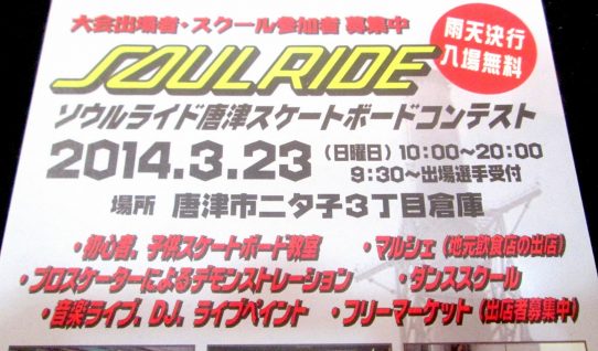 今週3月23日(日)に 九州佐賀県唐津市にて ソウルライド唐津スケートボードコンテストが 開催されま〜す!! スケート以外にも色んな事があるみたいで 完全にお祭り気分で楽しそうで〜…