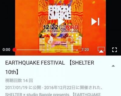 2016年、最後を締めくくったBIG PARTY[EARTHQUAKE FESTIVAL]の映像を神戸のフィルマーさくらCHANNEL氏がアップしてくれております、笑い有り、涙有…